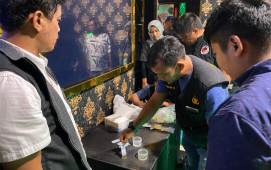 Aparat kepolisian lakukan tes urine terhadap para pengunjung THM Capital Building (Foto Ist/pnc) MEDAN: PagarNews.com - Tim Gabungan Polrestabes...