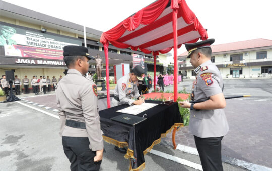 Penandatanganan serahterima jabatan Kapolrestabes Medan (Foto Ist/pnc) MEDAN: PagarNews.com - Kapolda Sumut, Irjen Pol Whisnu Hermawan Februanto, memimpin upacara...