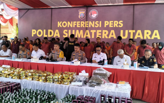 Kabid Humas Polda Sumut, Kombes Pol Ferry Walintukan didampingi Direktur Reserse Narkoba, Kombes Pol Jean Calvijn Simanjuntak merilis pengungkapan kasus...