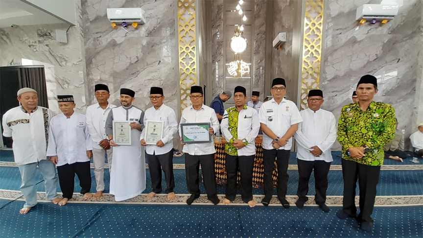 Sertifikat itu diterima langsung oleh Ketua BKM Quatul Muslimin Drs H Rivai Nasution MM bersama pengurus lainnya di sela acara Gebyar Tabligh Akbar dalam rangka Safari Dakwah Menyambut Maulid Nabi Muhammad SAW bersama Habib Ahmad Al Habsyi di masjid tersebut, Rabu (3/9/2025).