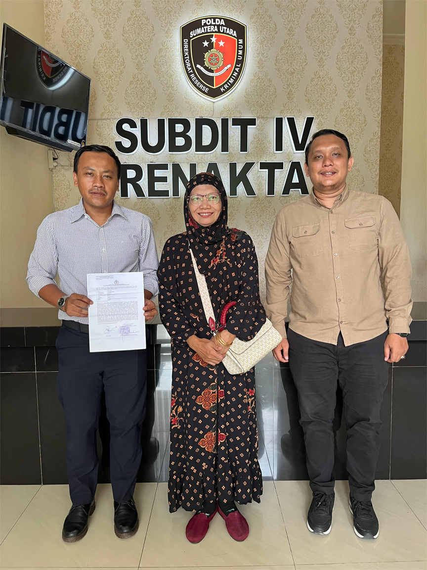 “ES ini kami laporkan pada 5 Juli 2024 di Polda Sumut. Saat ini kasus ini sudah naik ke penyidikan (Sidik ) dan pelapor dan terlapor juga sudah diperiksa. Untuk itu kami meminta ke penyidik agar polisi segera menetapkan ES sebagai tersangka dan segera menangkapnya,” ujarnya, Selasa (19/8), di Polda Sumut.