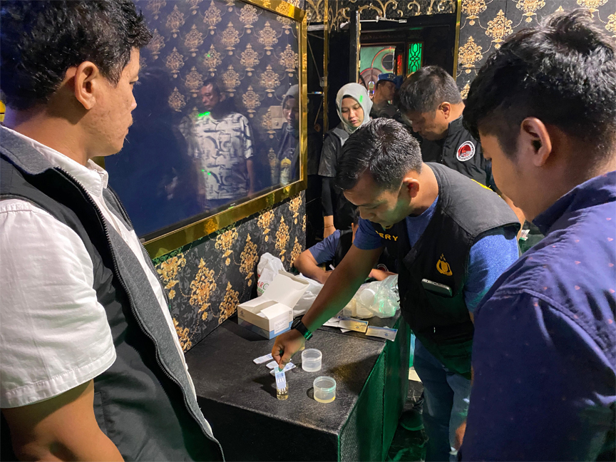 Aparat kepolisian lakukan tes urine terhadap para pengunjung THM Capital Building (Foto Ist/pnc)