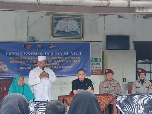 Kegiatan yang dimulai pukul 17.00 WIB itu dipimpin langsung oleh Direktur Reserse Siber Polda Sumut, Kombespol Dr. Bayu Wicaksono, S.H.,S.I.K.,M.Si. dan dihadiri Kasubdit I, Kassubbagrenmin, para kanit dan panit Ditressiber, serta pengurus dan anak-anak panti asuhan.